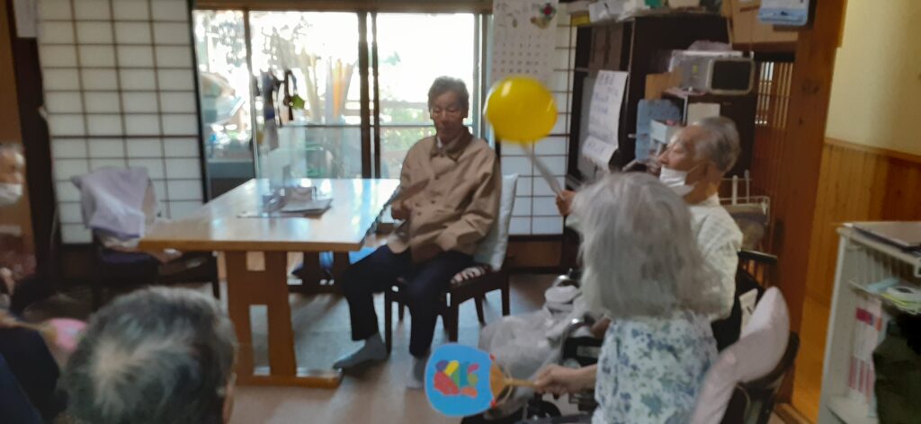 写真がブレておりますが、盛り上がった「うちわで風船バレー」です!男女混合、皆さんで和気あいあいと、元気な声が響きました。この後、運動会弁当を召し上がって頂きました。写真がない・・・。すみません( ノД`)シクシク エビフライ🍤や卵焼き、大満足でした(^▽^)/ 来年はどんな種目にしましょうか、また皆さんと相談です!