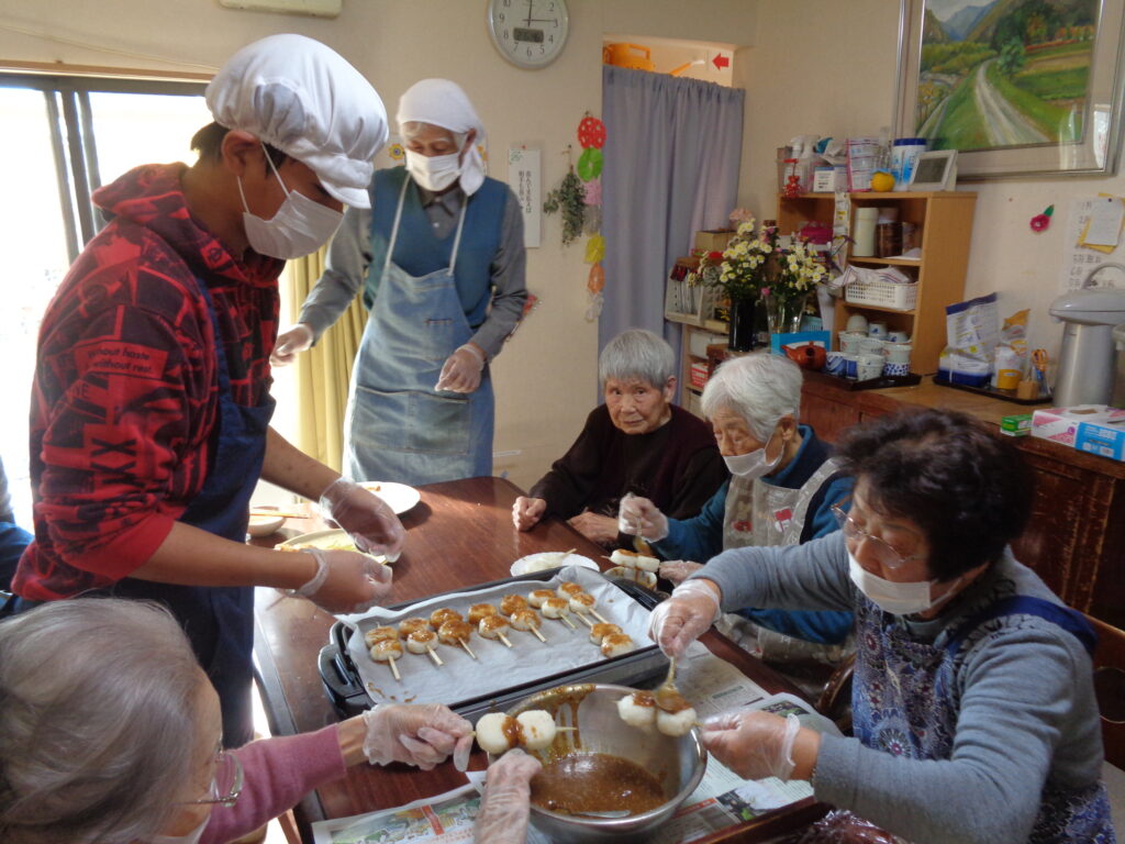 「こうやるといいよ‼」と利用者さん達が教えて下さいました。
