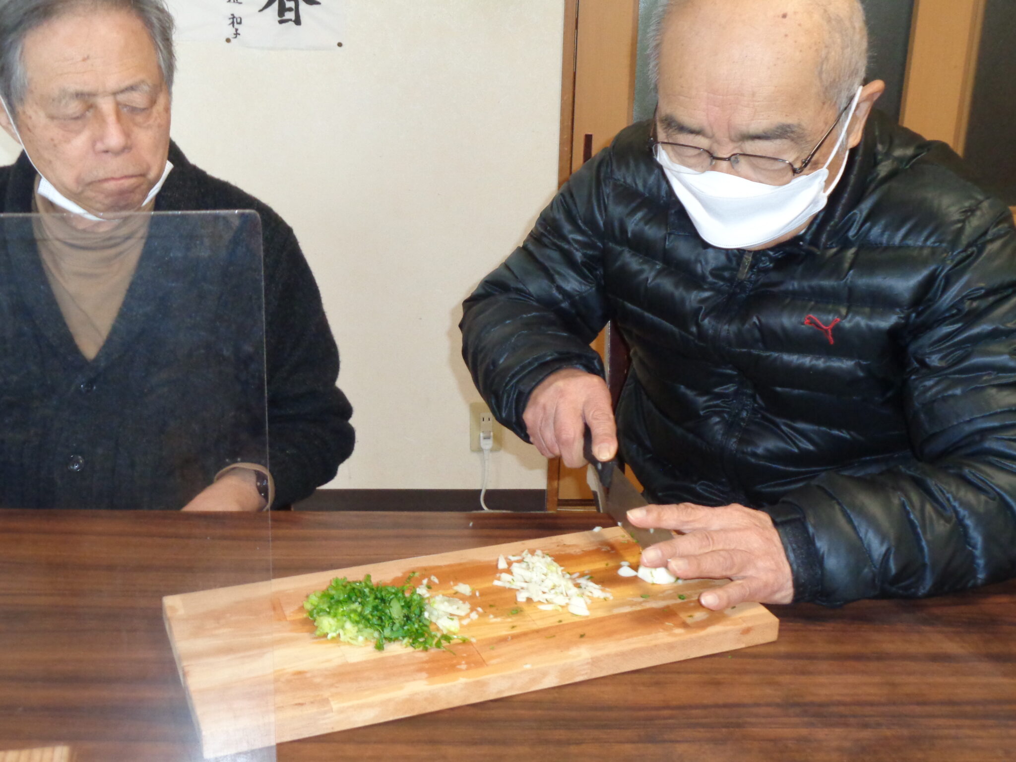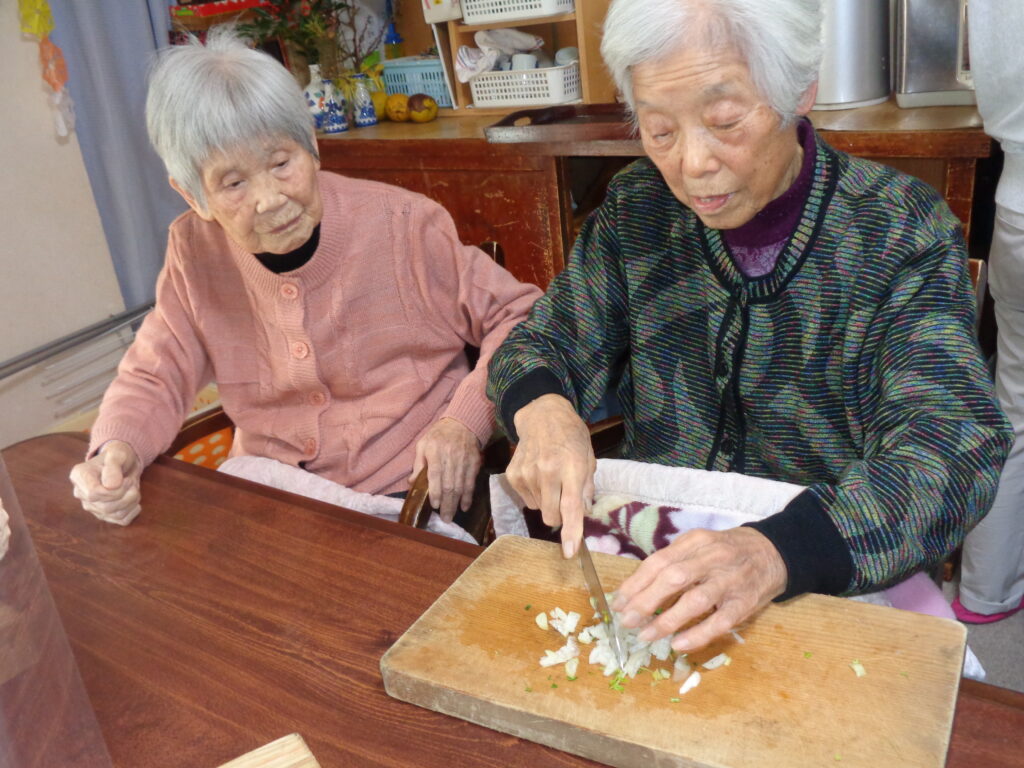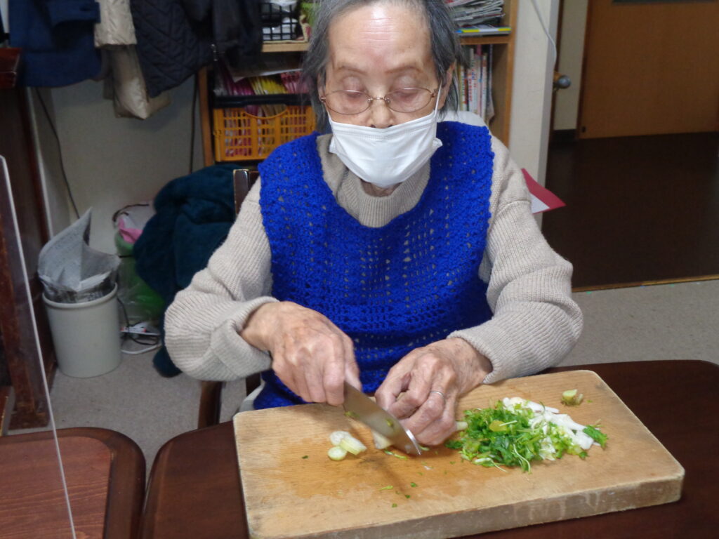 春の七草を「これは何の草かなぁ?」とおっしゃりながら、皆さんで少しずつ交代しながら刻みました。